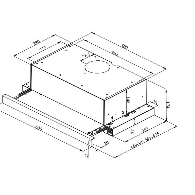 Hündürlüyü, sm: 14,7 Eni, sm: 50Dərinliyi, sm: 28,3