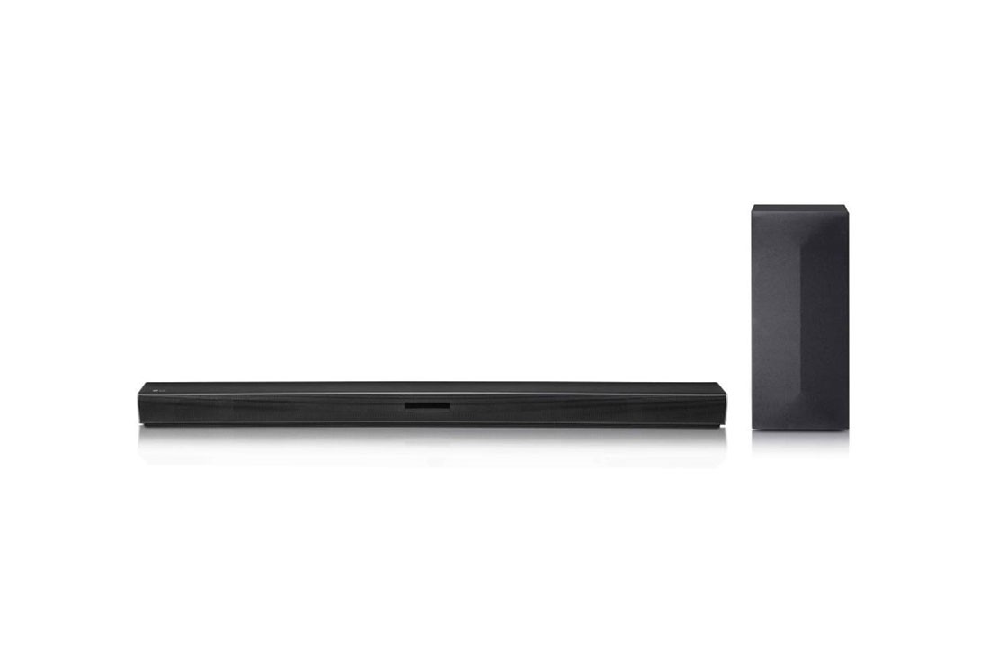 LG soundbar 2.1 kanal səs sistemi ilə 300 W ümumi səs gücü təmin edir. Soundbarın özü 100 W, simsiz subwoofer isə 200 W gücə malikdir. Uyğunlaşa bilən Səs İdarəetməsi funksiyası məkandakı səsləri izləyərək ideal səs rejimini avtomatik seçir. Bluetooth 4.0 əlaqəsi mobil cihazlarla sadə və sürətli qoşulmanı təmin edir. Optik giriş və USB portu vasitəsilə televizor və digər qurğulara asan şəkildə qoşula bilir. DTS Digital Surround və Dolby Digital formatları dəstəklənir. Night Mode funksiyası ilə gecə vaxtı səs aşağı səviyyədə balanslanır. Cihaz həm divarda, həm də televizor stendində əla görünüş formalaşdırır.