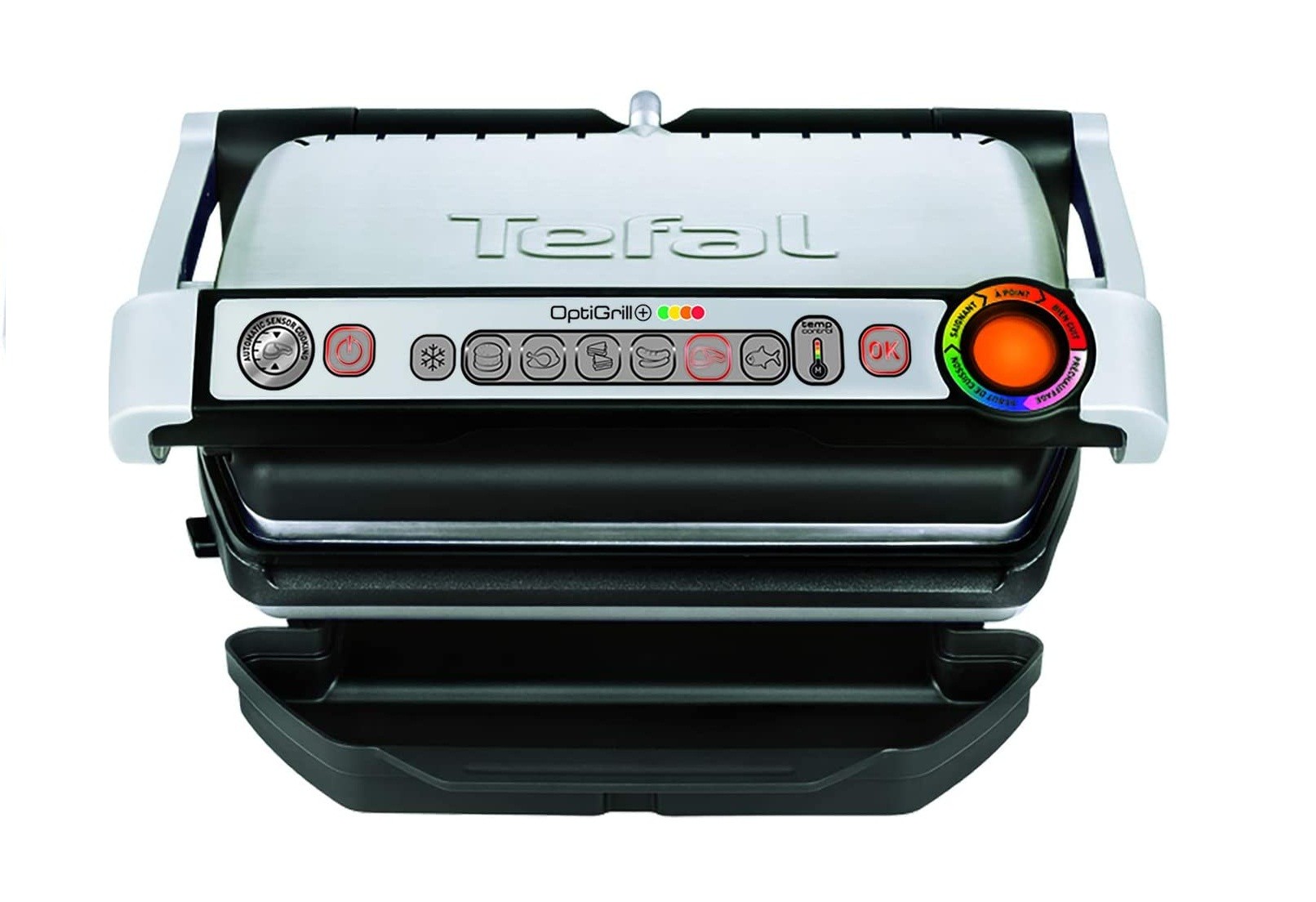 Limitsiz bişirmə seçimlərini təmin edən, dörd istilik dərəcəsi ilə manual rejimə malik olan son yeniliyimiz OptiGrill+ elektrikli izqara ilə tanış olun. Avtomatik sensor bişirmə texnologiyası ilə zənginləşdirilmiş OptiGrill+ səthindəki yeməyin sayını və qalınlığını olduğu kimi müəyyən edir, istilik və temperaturu tənzimləyir və əla nəticələr verir. Göstərici işığı və səsli xəbərdarlıq sistemi sayəsində ətinizi istədiyiniz kimi (az, orta və yaxşı bişmiş) yüksək həssaslıqla bişirməyə və bişirmə zamanı onu təqib edə bilmənizə imkan verir. 6 bişirmə proqramı (Hamburger, Toyuq, Sandviç, Kolbasa, Qırmızı Ət, Balıq) və dondurulmuş yemək rejimi və 4 istilik parametrinə malik əl rejimi ilə bu izqara mükəmməl yemək hazırlamağınıza imkan yaradır. Bundan əlavə, yapışmayan tökmə alüminium iç təbəqə, 2-4 nəfərlik yemək hazırlamaq üçün kifayət edən 600 sm2 yemək sahəsi və damlamanın qarşısını alan böyük 7° meylli nimçə yemək bişirərkən əlavə rahatlıq təmin edir.