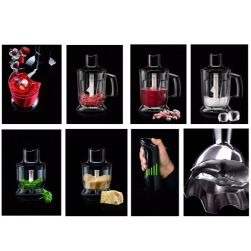 Bu blender istənilən mətbəxi bəzəyə bilən erqonomik və dəbli qara dizayna malikdir. Blenderin sapının təkmilləşdirilmiş forması onda sevimli yeməklərinizi hazırlamağınızı daha da rahat edəcək. Kitdə həmçinin kartof qızartmasını kəsmək üçün istifadə edilə bilən xüsusi yemək prosessoru da var. Siz 2 sürətdən birini seçə bilərsiniz.