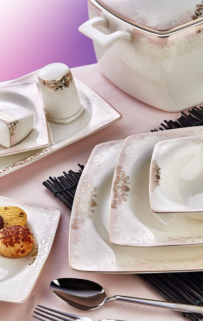 Əsas xüsusiyyətləri: Porselen; 1400°C kimi olduqca yüksək bir istilikdə bişirilərək hazırlanan, tamamən təbii xammaldan istehsal edilən və işlədilməsi olduqca praktik bir maddədir.Dəstə daxildir: Servis qabı-12, Yemek qabı-12, Keks qabı-12, Sup kasa-12, Salat qabı (Kiçik) - 2, Salat qabı (Böyük) - 1, Sup qabı - 1, Sup qab qapağı - 1, Duz qabı - 2, İstiot qabı - 2, Diş çöpü qabı - 2, Qapağı - 2