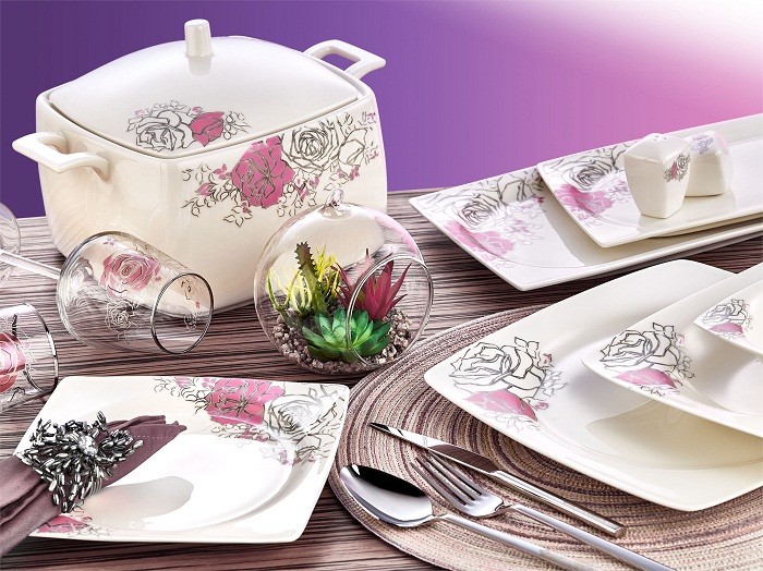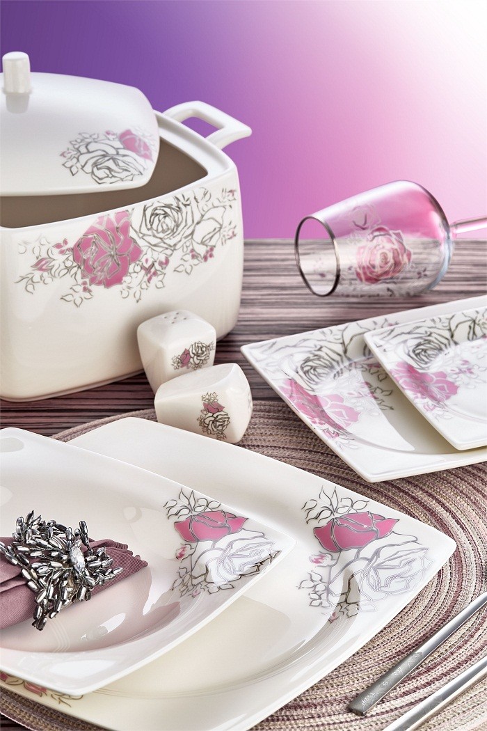 Əsas xüsusiyyətləri: Porselen; 1400°C kimi olduqca yüksək bir istilikdə bişirilərək hazırlanan, tamamən təbii xammaldan istehsal edilən və işlədilməsi olduqca praktik bir maddədirDəstə daxildir: Servis qabı-12, Yemek qabı-12, Keks qabı-12, Sup kasa-12, Salat qabı (Kiçik) - 2, Salat qabı (Böyük) - 1, Sup qabı - 1, Sup qab qapağı - 1, Duz qabı - 2, İstiot qabı - 2, Diş çöpü qabı - 2, Qapağı - 2