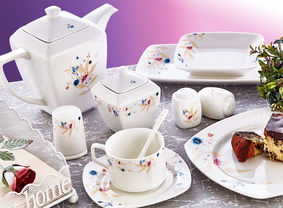 Əsas xüsusiyyətləri: Porselen; 1400°C kimi olduqca yüksək bir istilikdə bişirilərək hazırlanan, tamamən təbii xammaldan istehsal edilən və işlədilməsi olduqca praktik bir maddədir.Dəstə daxildir: Servis qabı-6, Çay fincanı-6, Çay Nəlbəki-6, Çay qaşığı-6, mürəbbəlik-6, səhər yeməyi qabları-4, Kayık Tabağı-2, çaynik + qapaq-2, şəkər qabı + qapaq-2 ,duz-istiot qabı-2, Kürdanlık+qapaq-2, süd qabı- 1, Salfetka qabı -1