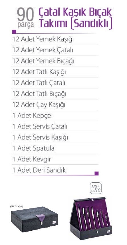 Əsas xüsusiyyətləri: Uzun illər istifadə edilsə belə parlaqlığını itirməyəcək paslanmaz, 18/10 Cr-Ni Çəngəl-bıçaq dəsti