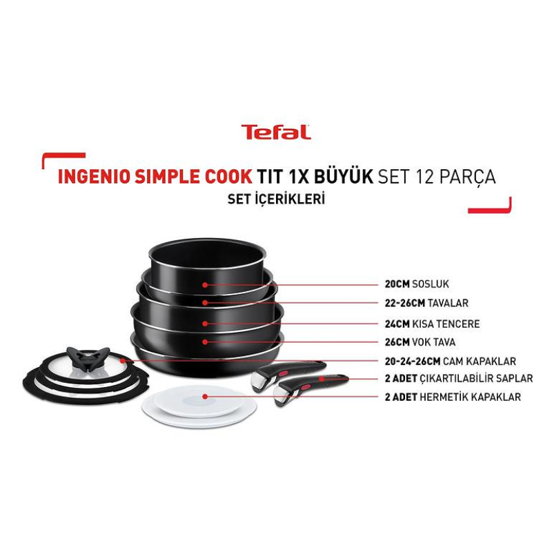 Tava və qazan dəsti TEFAL Ingenio Titanium Simple Cook 1X 12 Parça
