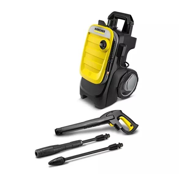 K 7 Kompakt yüksək təzyiqli aparat, istifadə rahatlığı və məhsuldarlıq üstünlüklərini özündə cəmləşdirərək saatda 60 m²-ə qədər inadkar səth çirkləndiricilərini təmizləyir. Bu avadanlıq içərisində iki daşıyıcı tutacaq, hündürlüyündə tənzimlənən bir teleskopik qol, Quick Connect yüksək təzyiqli silah, bükülmə əleyhinə 10 metrlik PremiumFlex şlanqı Vario Power sprey başlığı (VPS), palçıq kəsici və su filtri var. K 7 Yığcam həm üfüqi, həm də şaquli istifadə edilə bilər, cihaz tez-tez istifadə üçün idealdır.