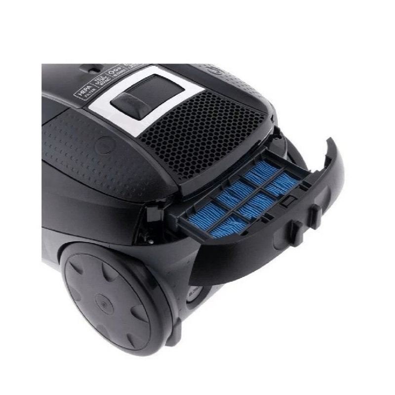 Böyük tutumlu toz qabı daha uzun müddətli və fasiləsiz təmizlik imkanı təqdim edir. İntensiv filtrasiya sistemi havanı toz və allergenlərdən azad edərək sağlamlıq baxımından təhlükəsiz bir mühit yaradır. HEPA filtr texnologiyası ən incə hissəcikləri belə tutmaq üçün nəzərdə tutulub.