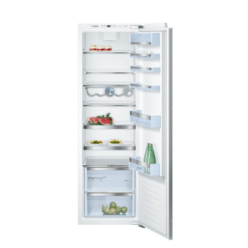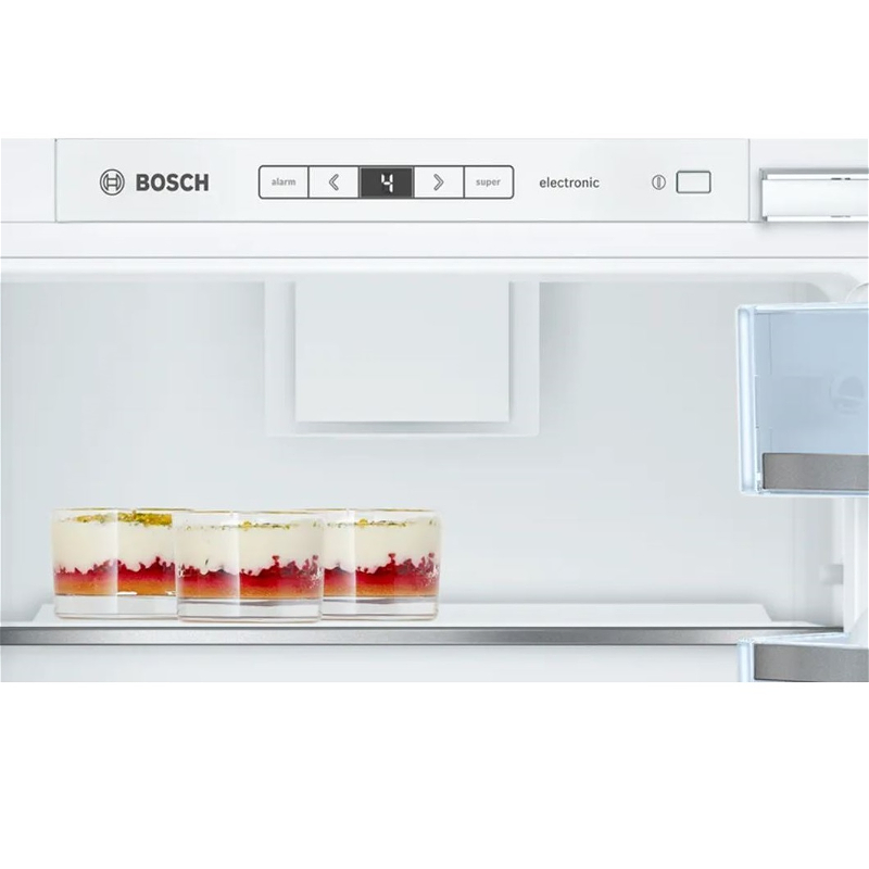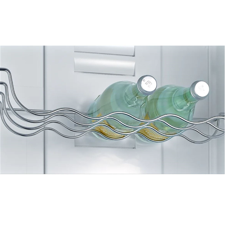 Təhlükəsizlik şüşəsindəki bölünmüş VarioShelf, əşyaları soyuducuya qoymaq və onları çıxarmaq üçün asanlıqla tənzimlənə bilər. O, dik butulkalar və ya qablar kimi daha böyük əşyalar üçün idealdır və daha çox yerə ehtiyacınız olduqda sizə tam rahatlıq verir. Rəfin digər yarısı hamar bir şəkildə birincinin altına sürüşür və kifayət qədər yer açılır.